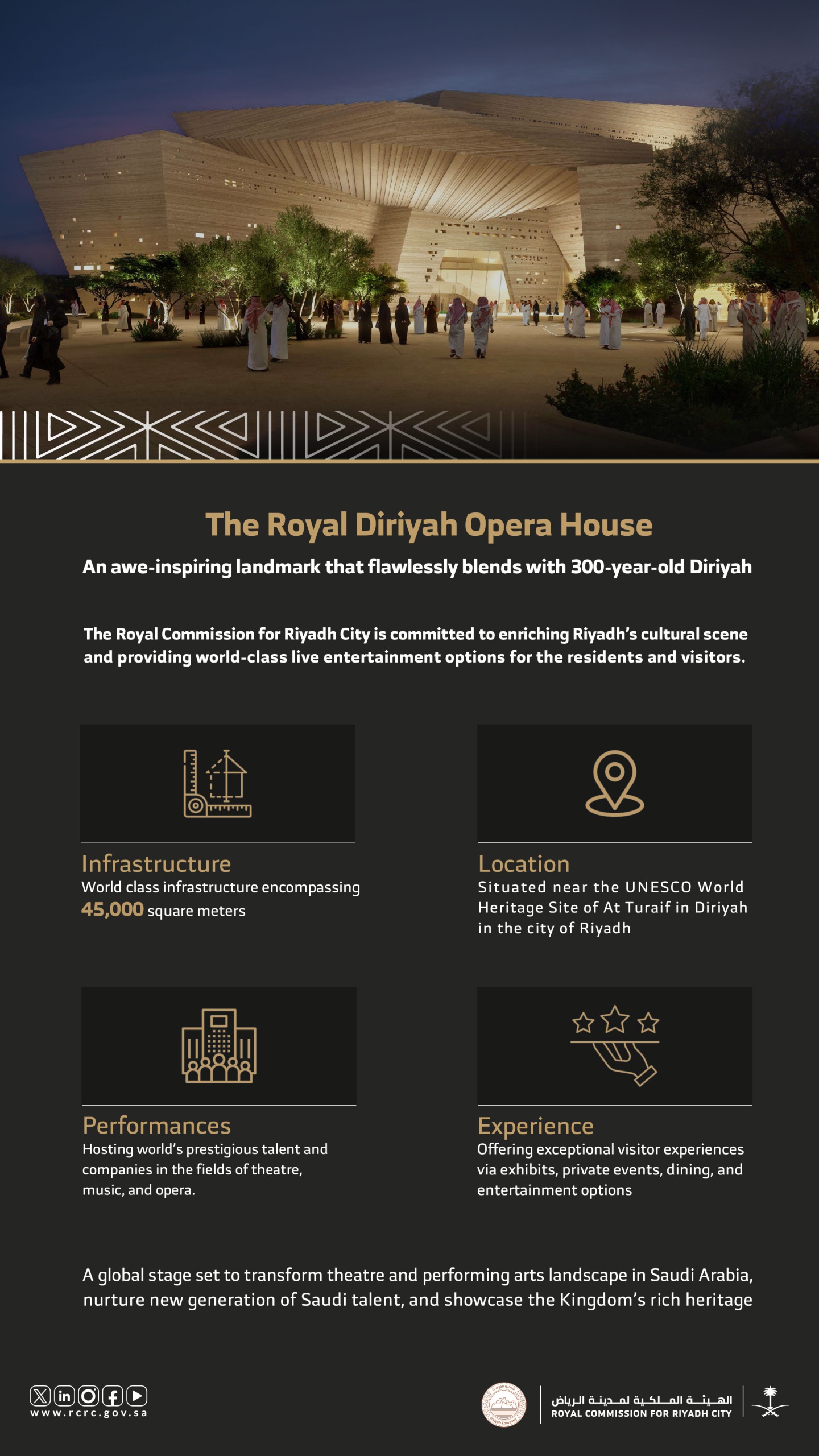 The Royal Commission for Riyadh City, in cooperation with Diriyah Company, has announced the establishment of the Royal Diriyah Opera House in Diriyah.